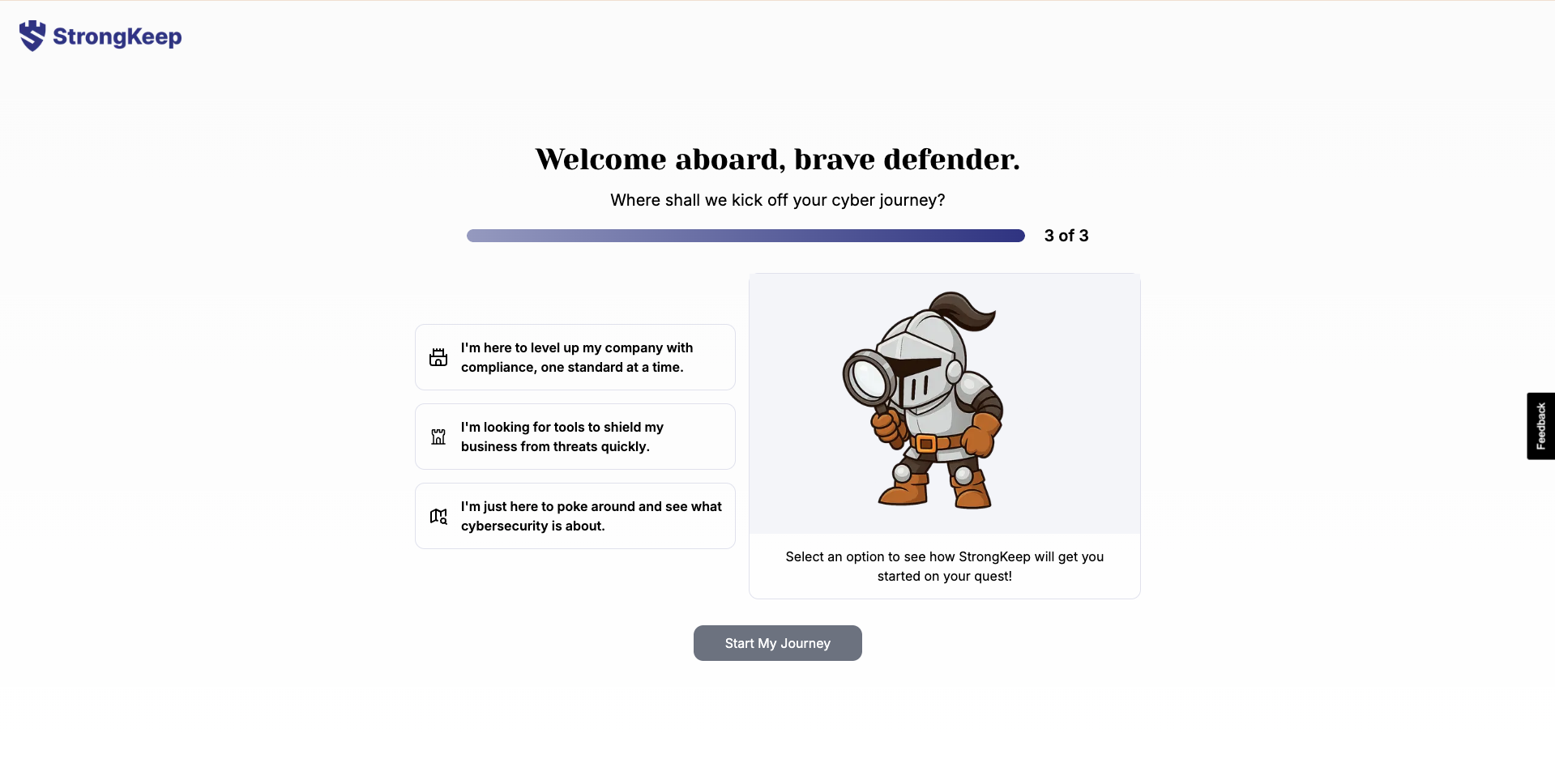 Select an option and click Start My Journey.