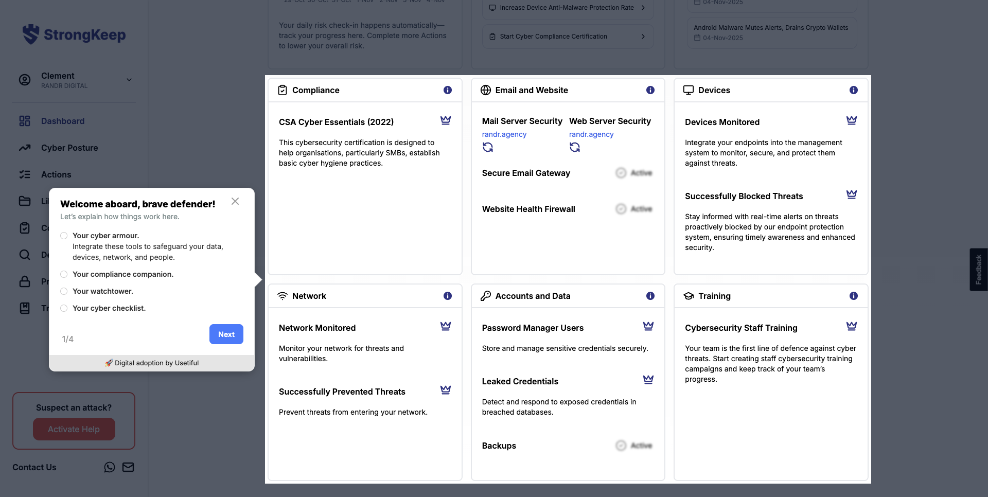 From here, you can explore your dashboard, start a Cyber Essentials assessment, or connect your protection tools.