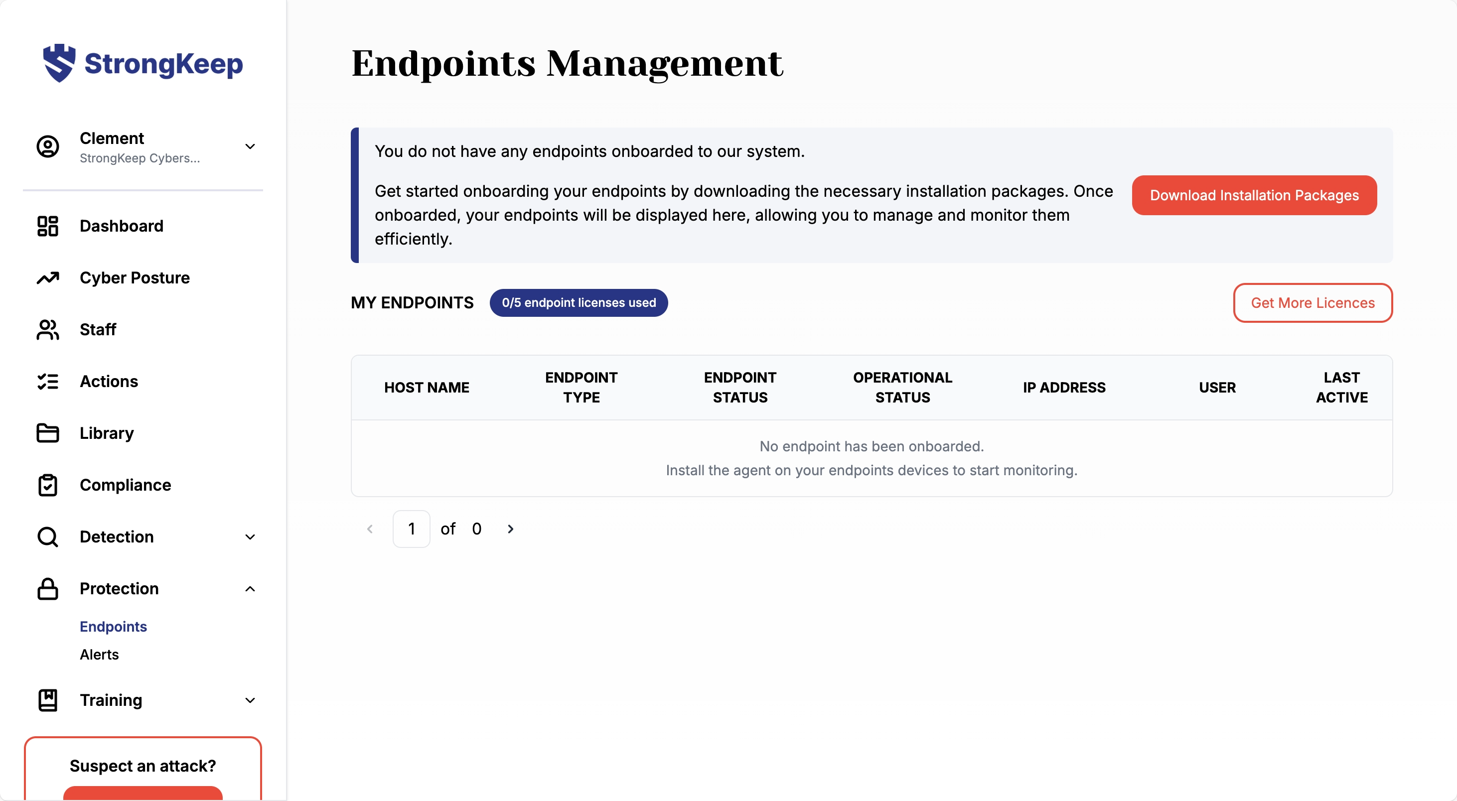 If no devices are onboarded yet, you’ll see an empty state with a button that says Download Installation Packages. Click it to begin.
