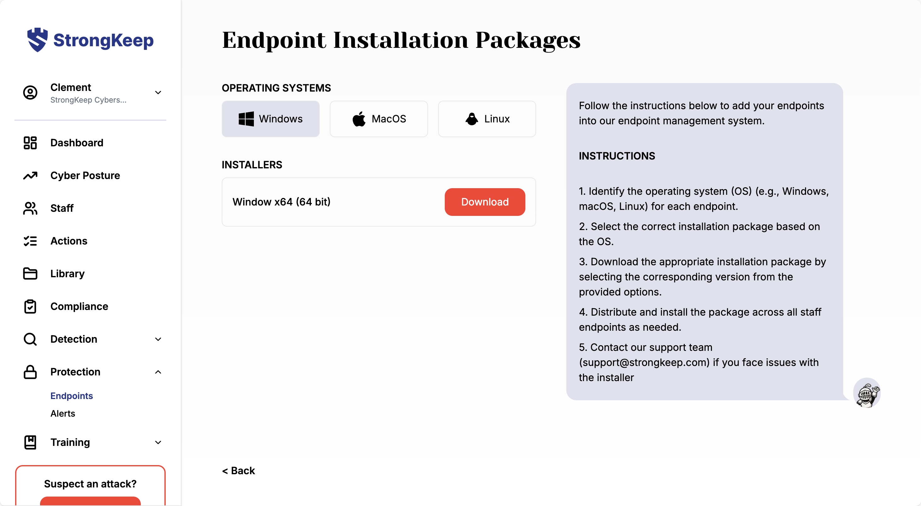 Share the installer with your team and run it on all staff endpoints that need protection.