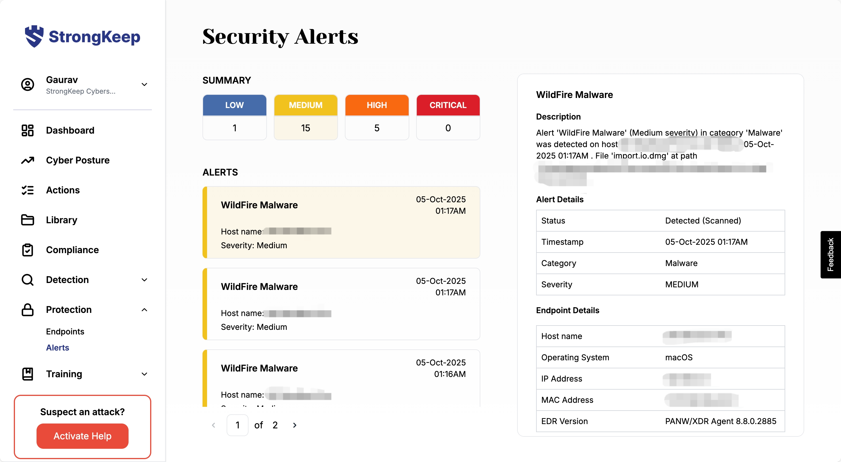 Once installed, the agent keeps your staff devices protected in real time and reports security alerts directly to your Detection → Alerts page.