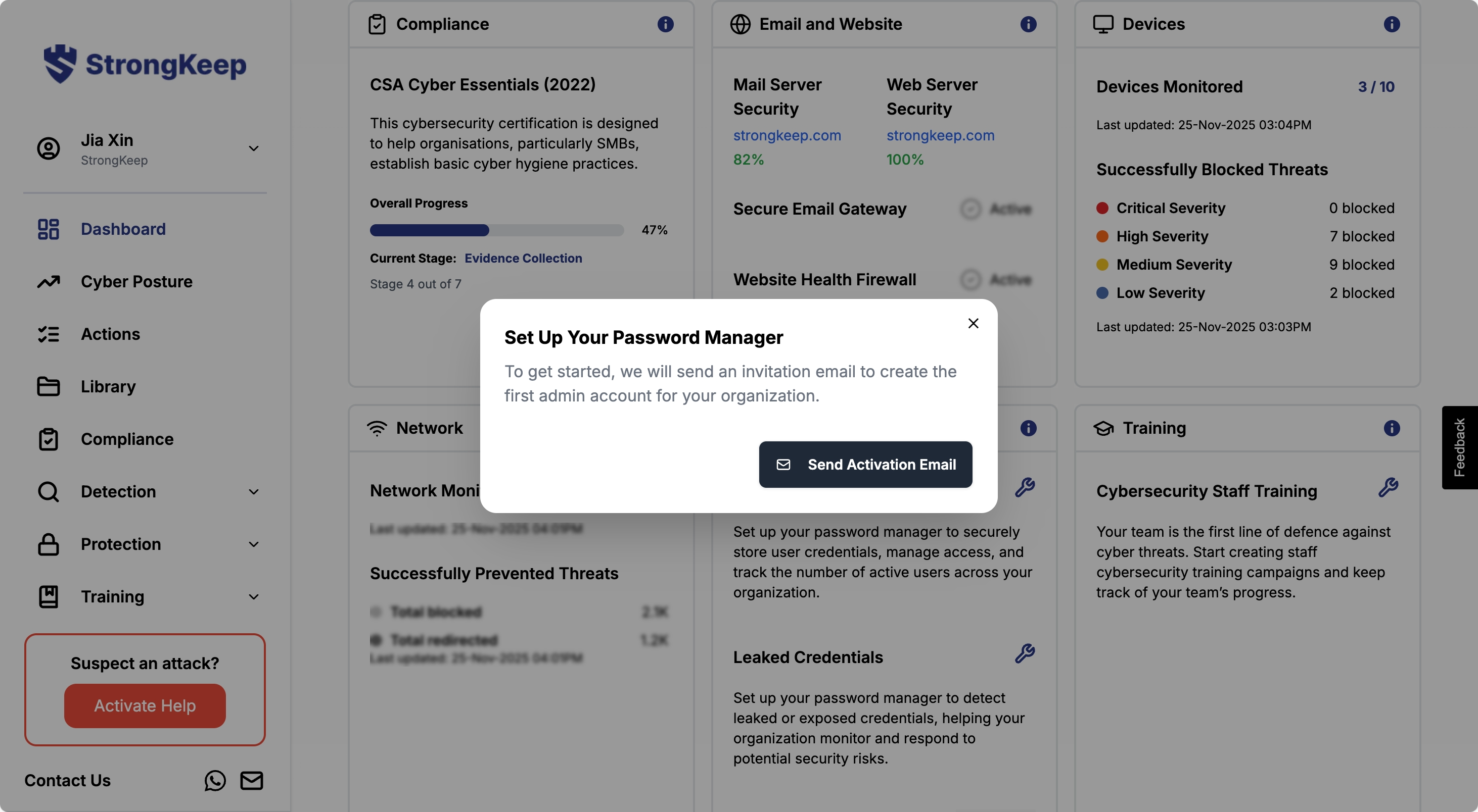 To begin, trigger the setup email from your StrongKeep dashboard.