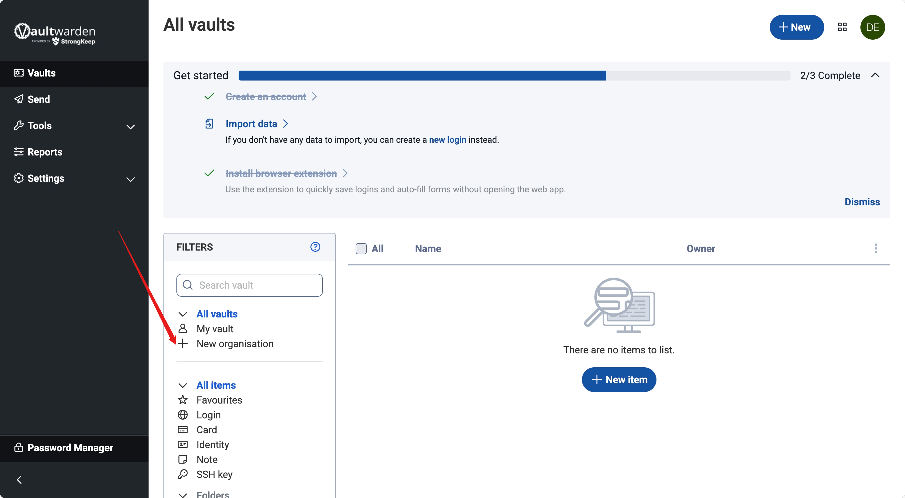 Your organisation is now ready — think of it as the shared workspace for your team passwords.