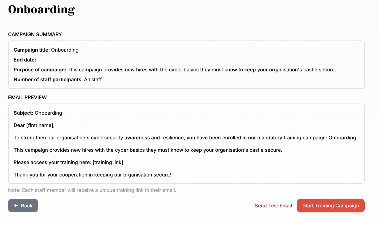 Before you begin, make sure your staff list is already added. Training campaigns are sent directly to your team.