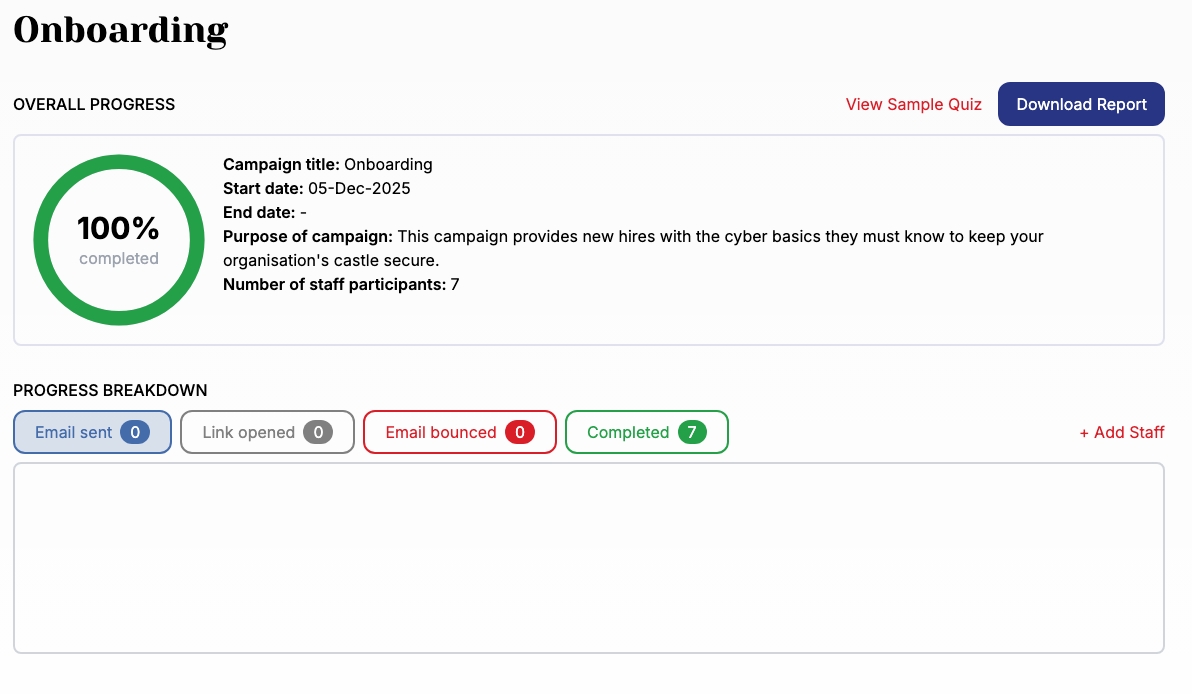 A default campaign for all staff- Onboarding