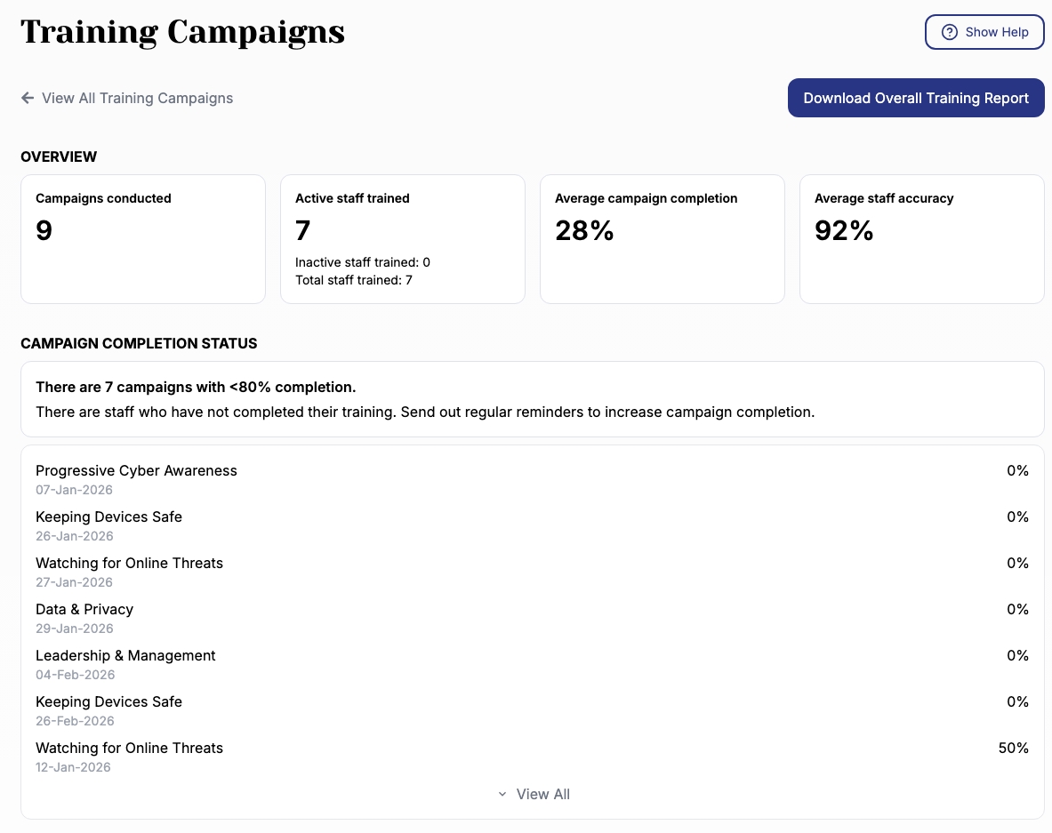 Overall Training Report → Across all campaigns
